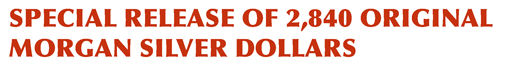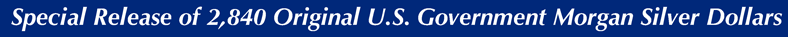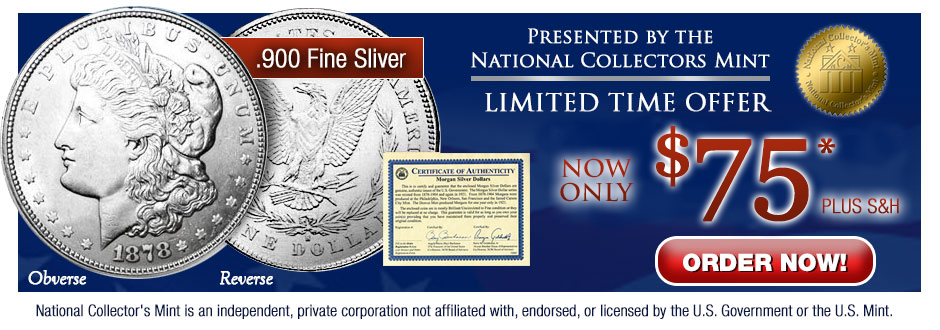 National Collector's Mint announces a special release of Morgan Silver Dollars 105 - 148 years old at $75.00 each. Several national dealers charge MORE for a comparable Morgan Silver Dollar. These Morgans are among the last surviving originals still in existence, and each coin is guaranteed to be in Brilliant Uncirculated to Fine condition.